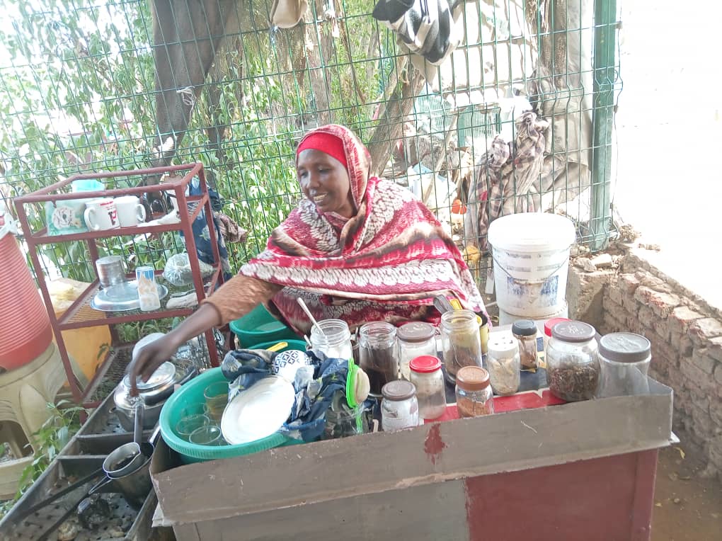 في شارع المك نمر، تجلس “طيبة” بائعة الشاي الشهيرة في شارع الجرايد، مثل علامة من علامات الخرطوم القديمة.